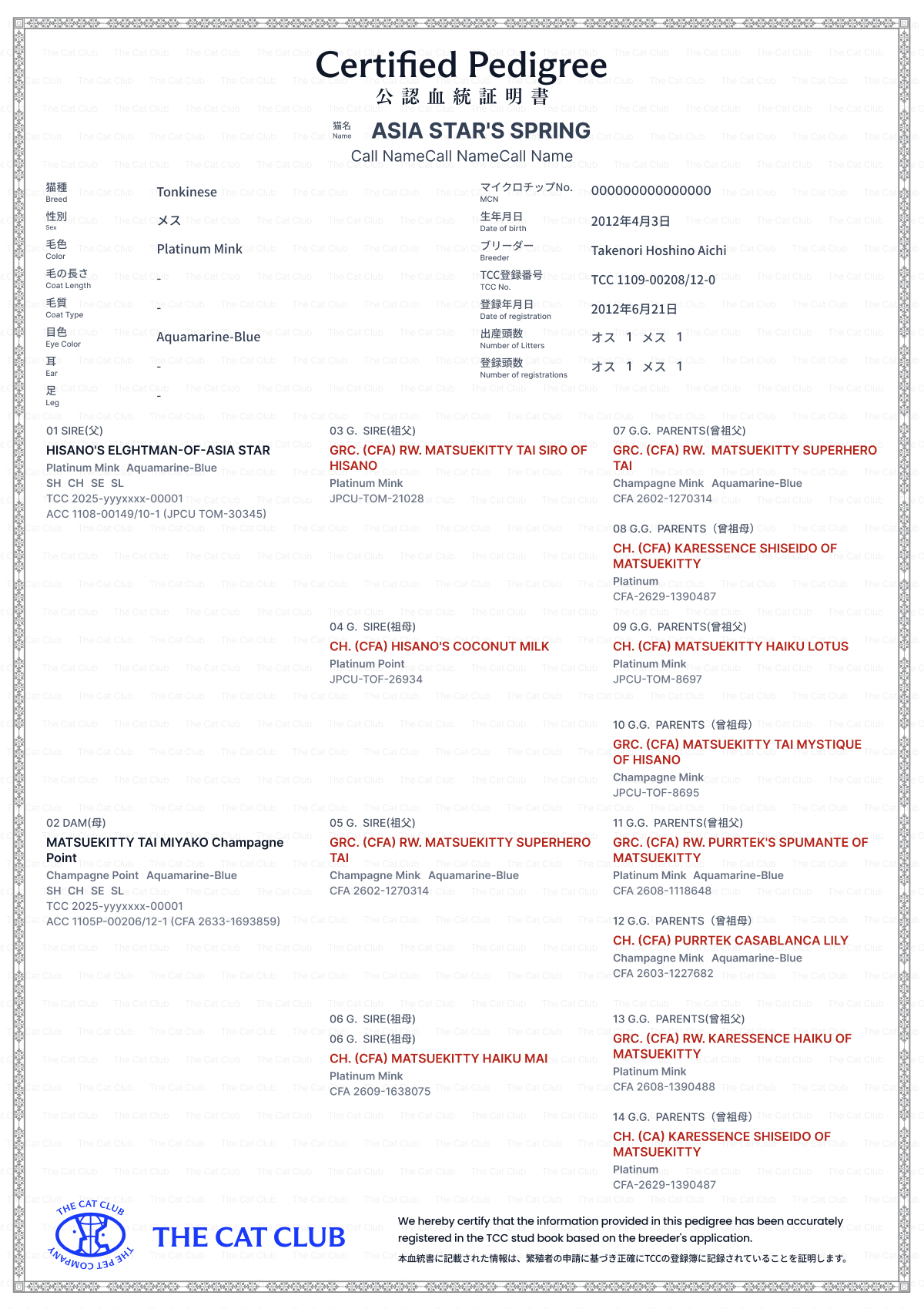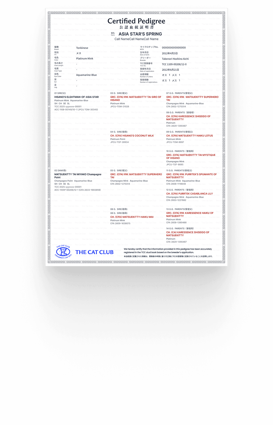 血統書のサンプルをみる