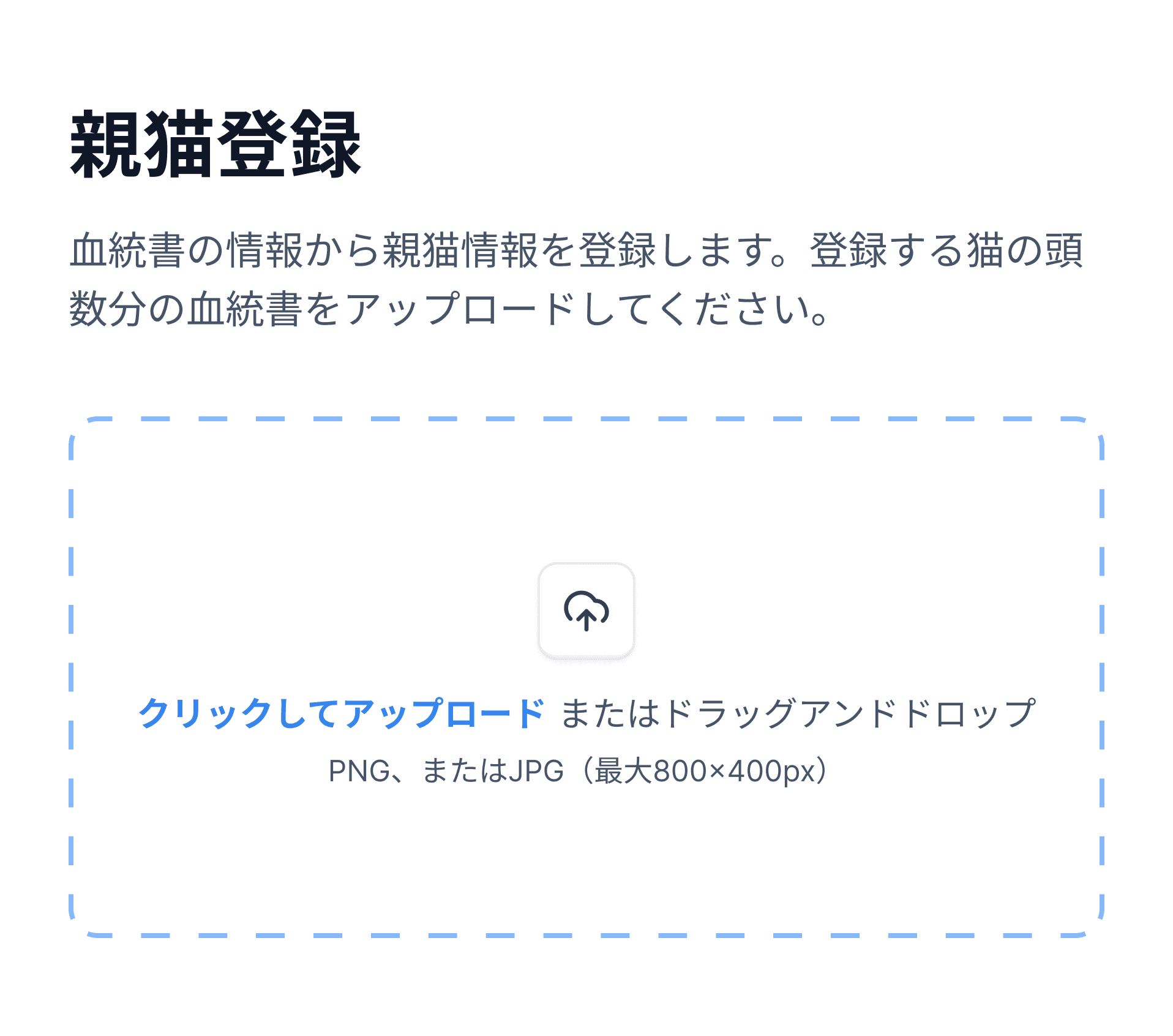 アナログの煩雑な手続きをデジタルで一新。血統書を写真で送るだけでかんたんに登録ができます。